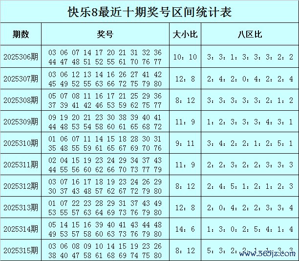 福彩怡悦8第2025315期奖号为:03 06 08 09 10 14 15 19 23 26 38 40 47 58 61 68 69 74 75 80,其中奖号大小比为8:12,八区比为5:3:2:2:1:1:3:3。